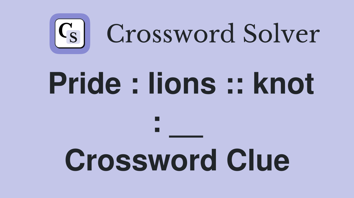 Pride : lions :: knot : Crossword Clue Answers Crossword Solver