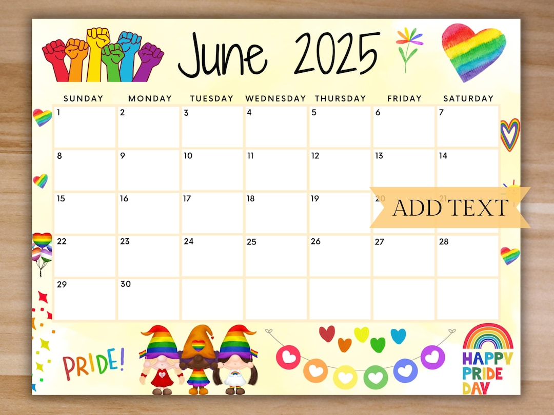 EDITABLE June 2025 Calendar Printable Calendar Pride Month Calendar