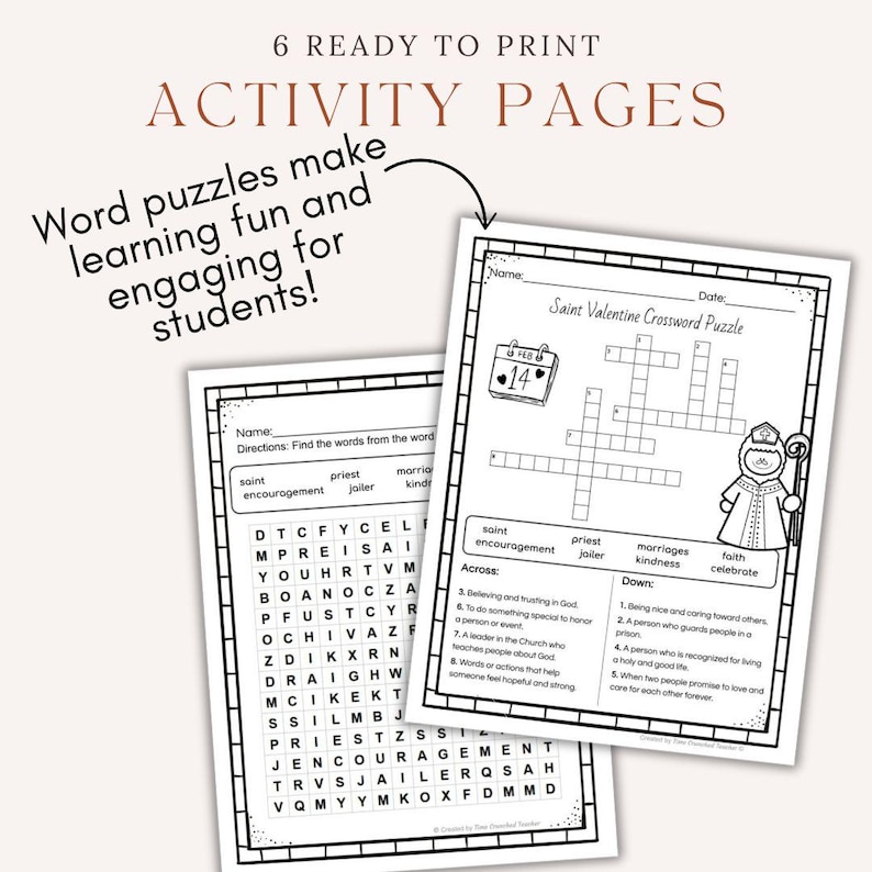 Printable Saint Valentine Unit 6 Pages of No Prep St Valentine