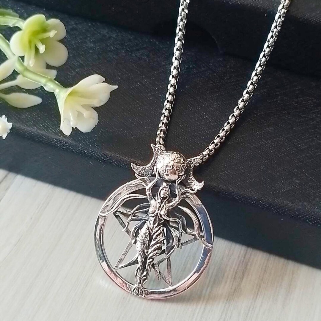 Triple Moon Goddess Priestess Pendant 925 Silver Sterling Sigil of