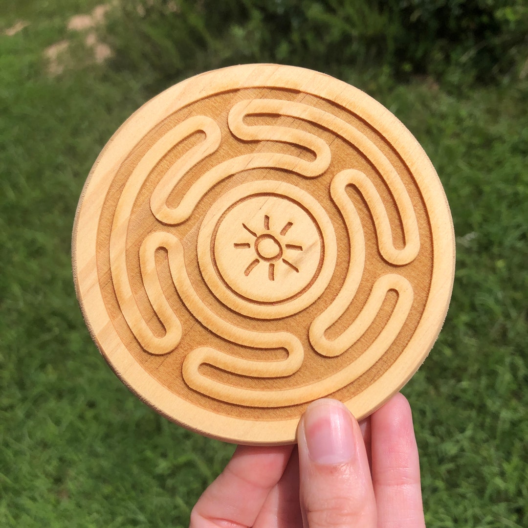 Small Wooden Hecate Wheel strophalos of Hekate Labyrinth Sacred Path
