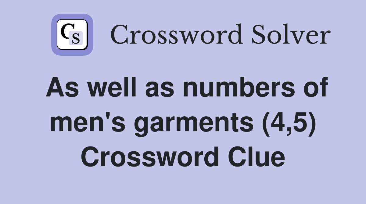 As well as numbers of men #39 s garments (4 5) Crossword Clue Answers
