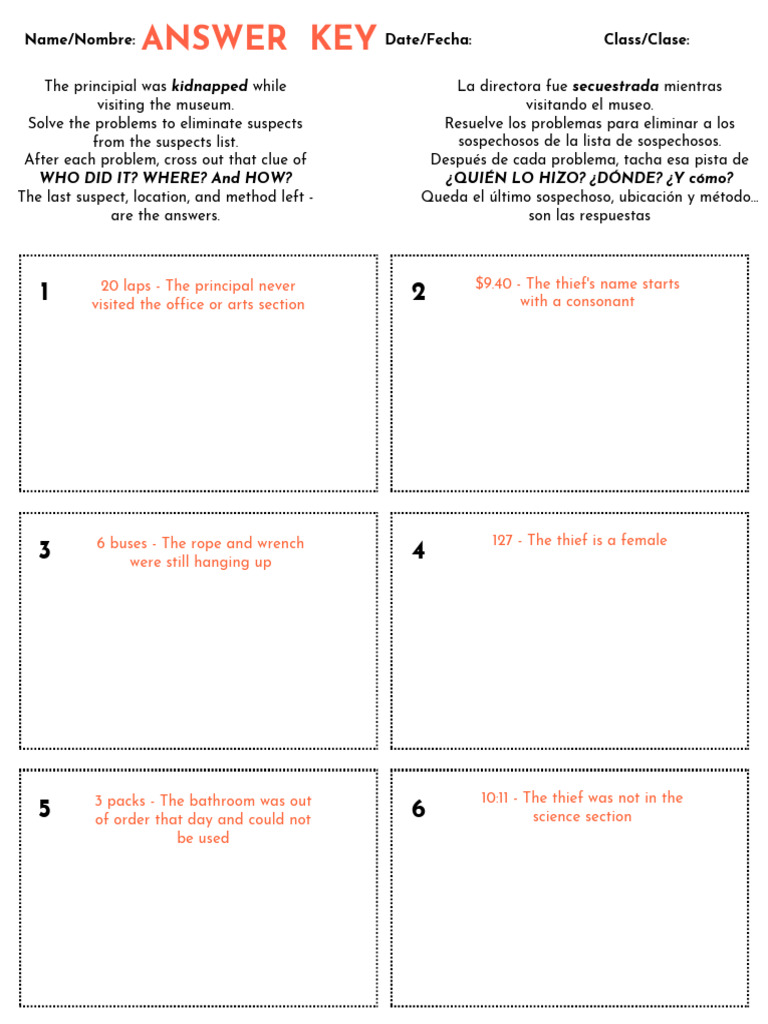 ANSWER KEYS Math Principal Kidnap Clue Scavenger Hunt PDF