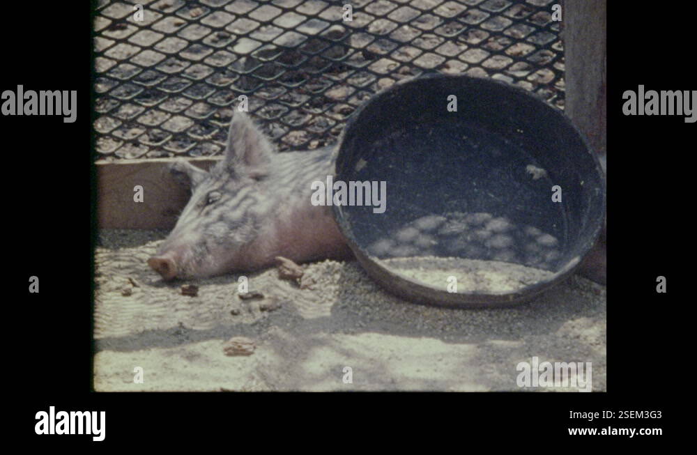 1970s: Primates jump in enclosure Pig lays in pigpen Girl pushes