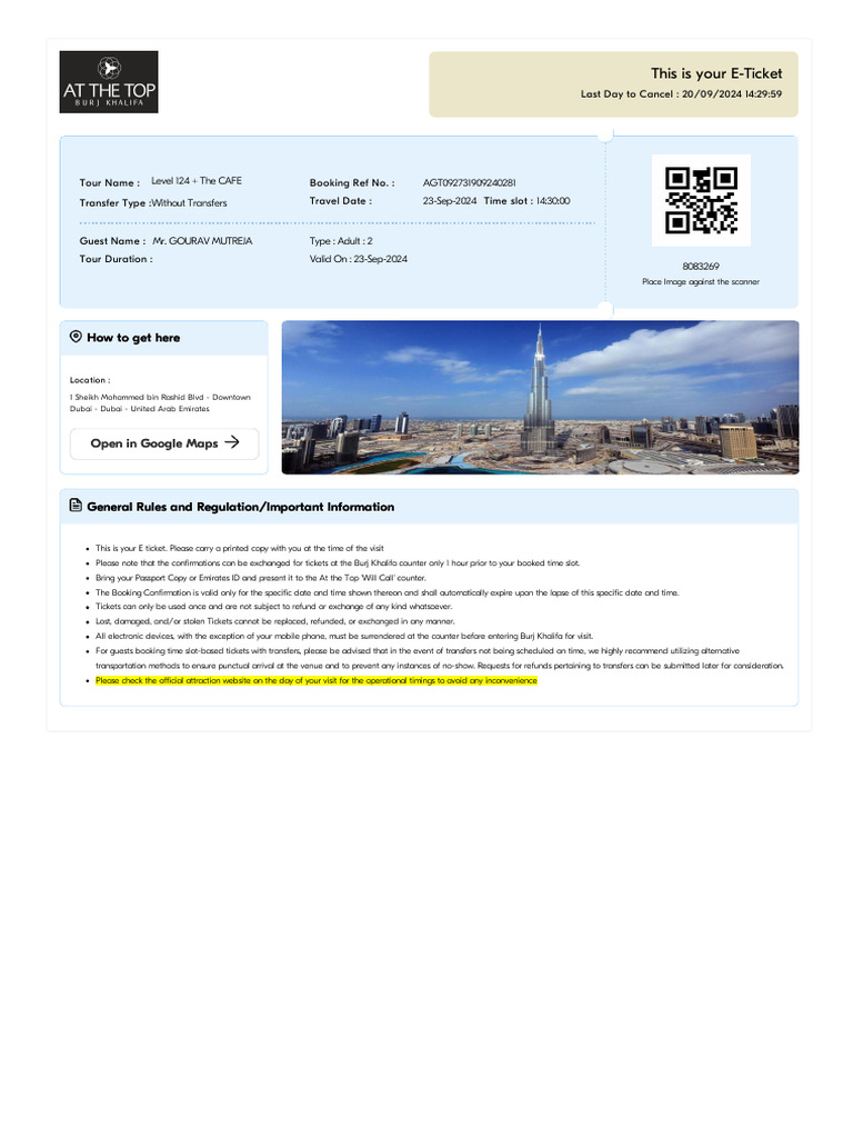 AGT092731909240281 Burj Khalifa Level 124 The Cafe Non Prime Hours