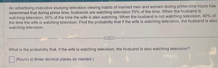 Solved An advertising executive studying television viewing Chegg com