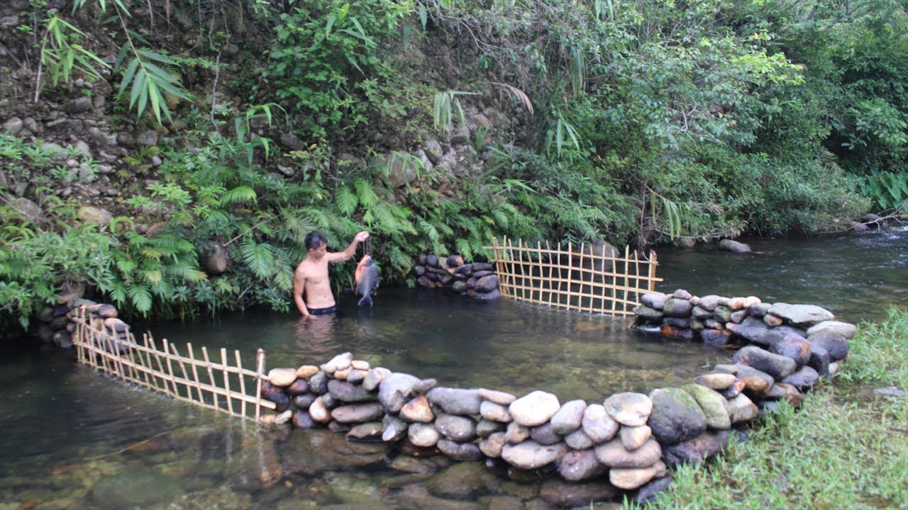 Primitive Technology: Build a Stone Dam to Raise Fish