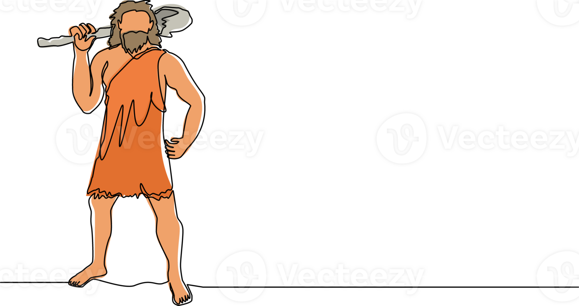 Single one line drawing stone age primitive man in animal hide pelt