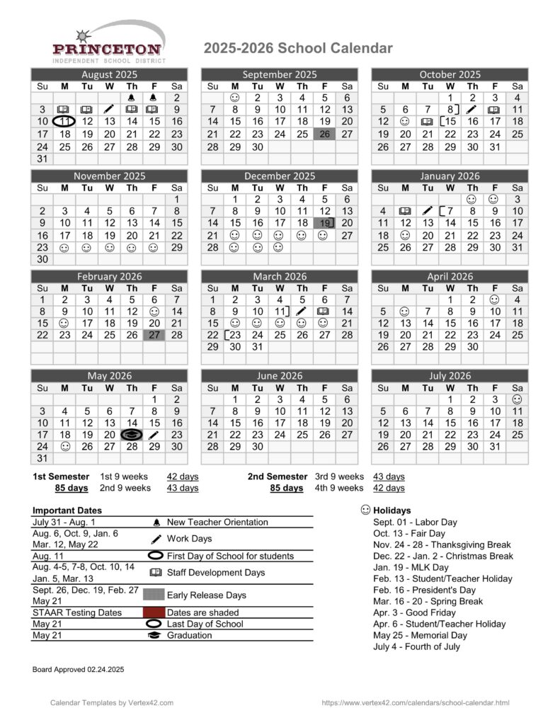 Princeton ISD School Calendar 25 26 PDF EduCounty