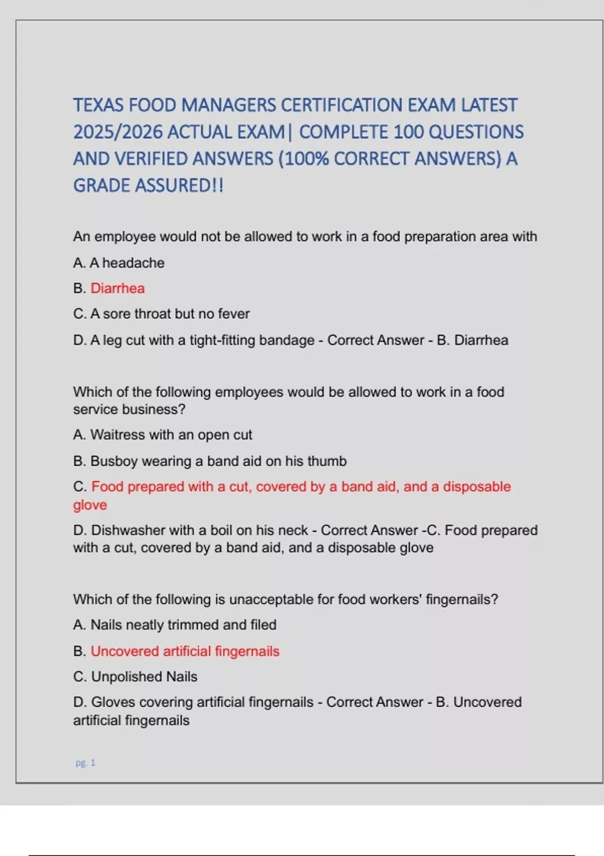 TEXAS FOOD MANAGERS CERTIFICATION EXAM LATEST 2025/2026 ACTUAL EXAM