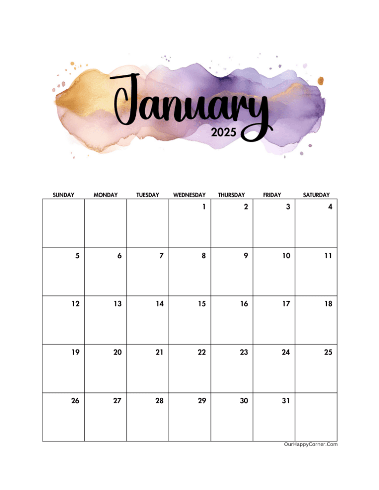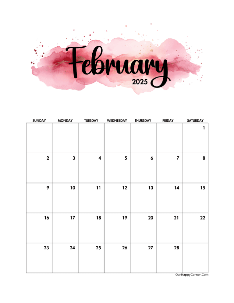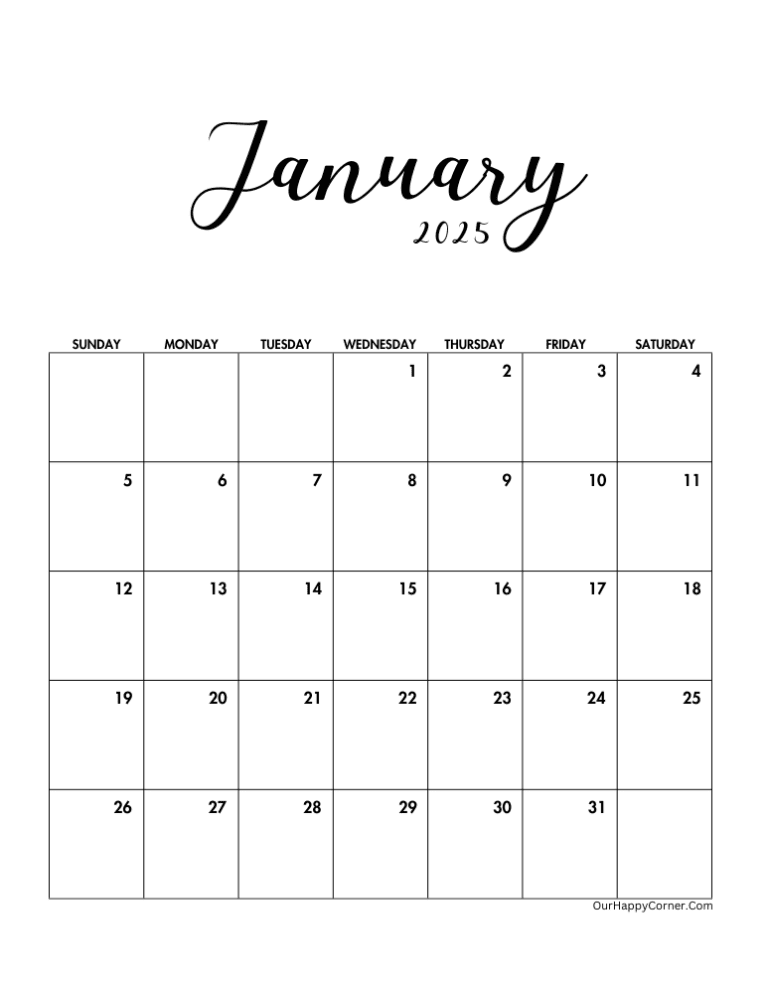 Free Printable Monthly Calendars 2025 Our Happy Corner