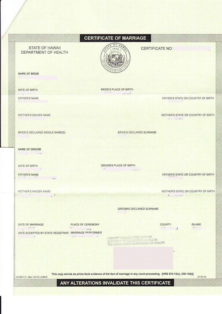 How To Get Certified Copy Of Marriage Certificate Hawaii