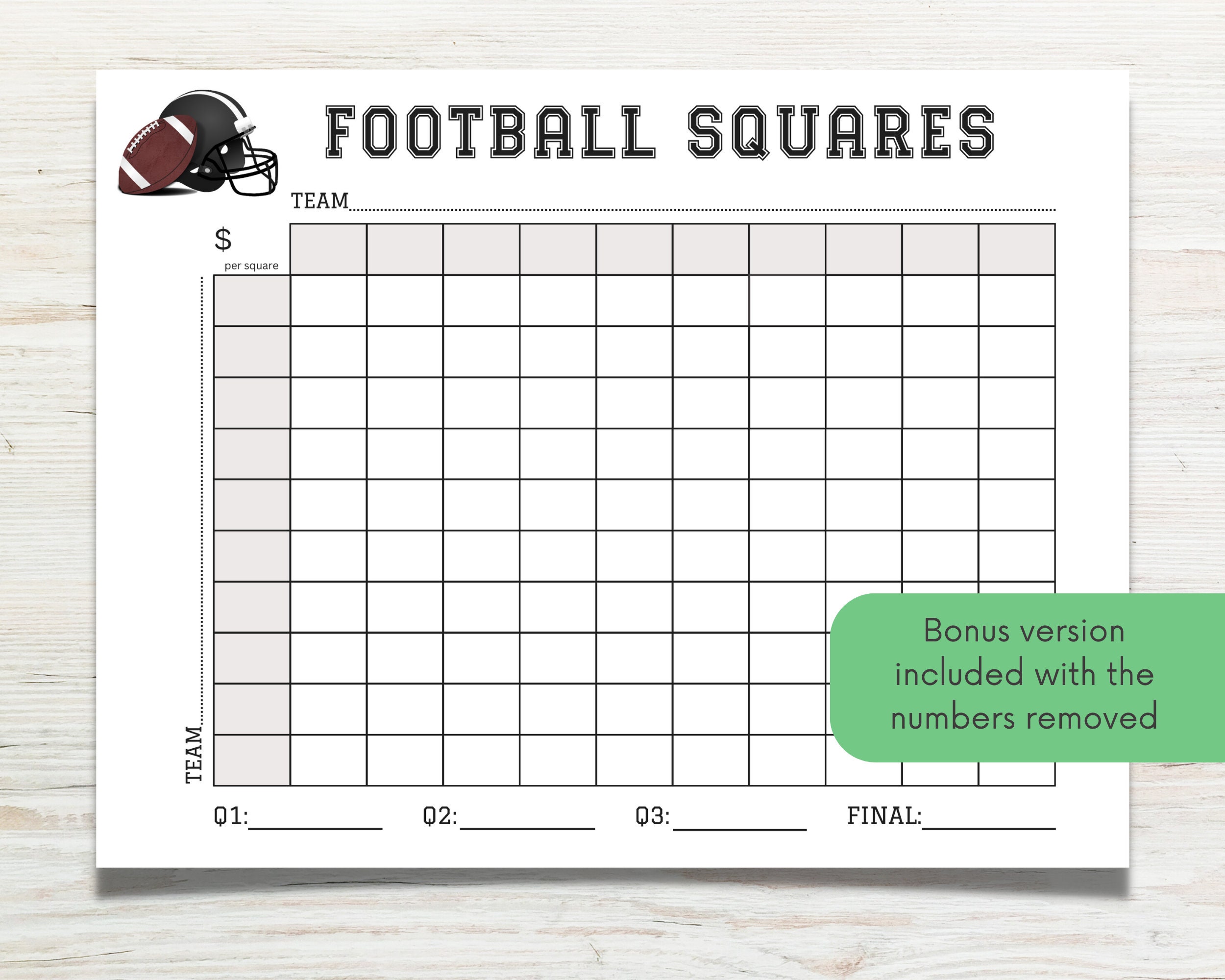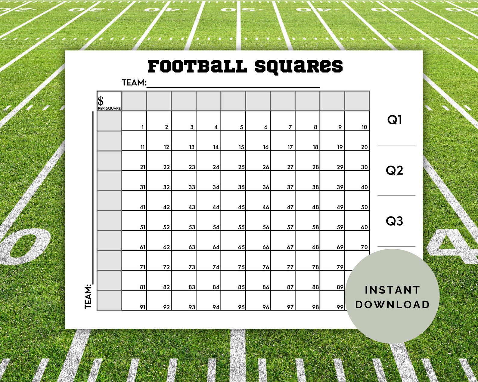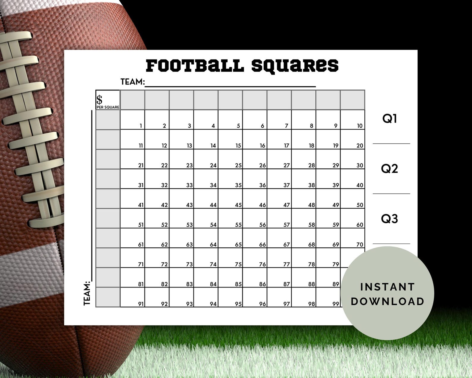 Football Squares Printable Game Board 100 Square Football Pool 100