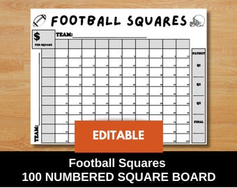 Football Squares 100 Squares Editable PDF Template Printable PNG