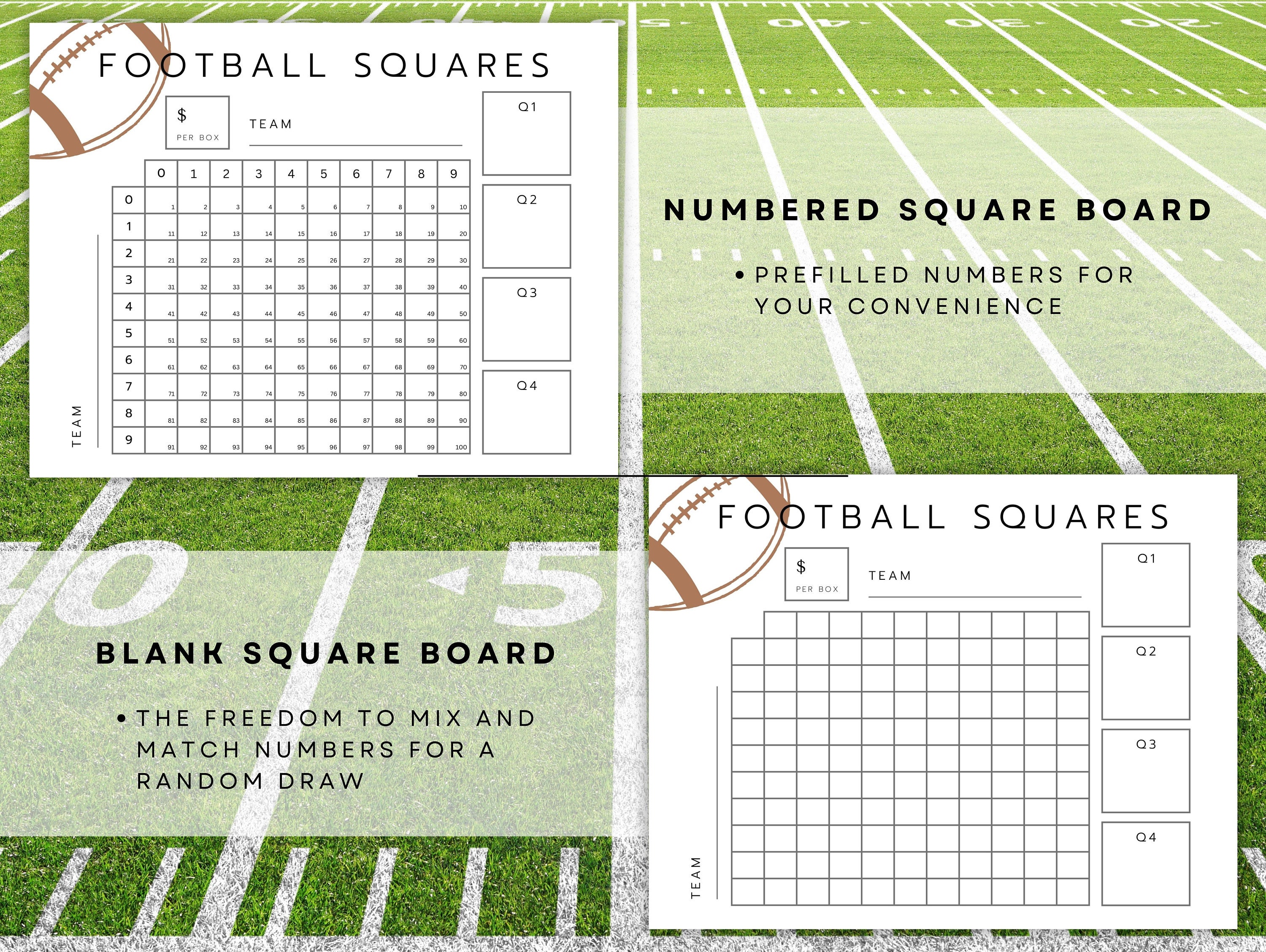 Football Squares Printable Football Fundraiser 100 Football Squares