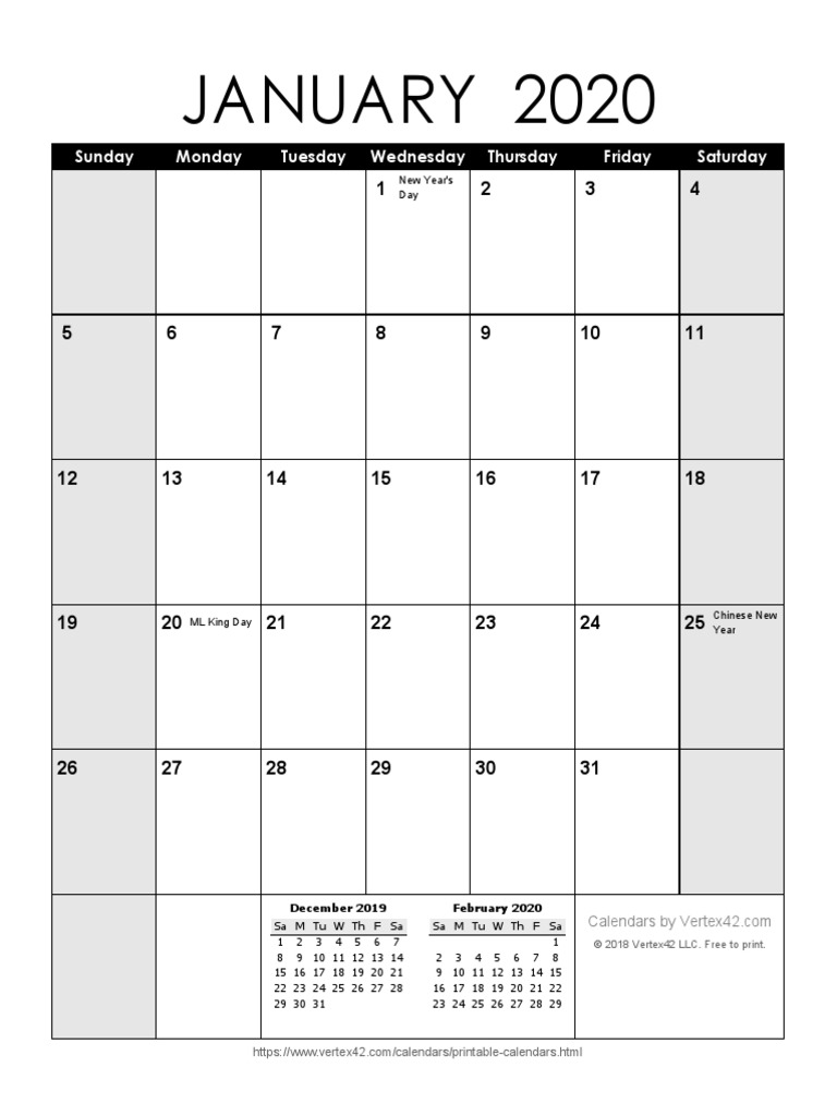 January 2020: Sunday Monday Tuesday Wednesday Thursday Friday Saturday