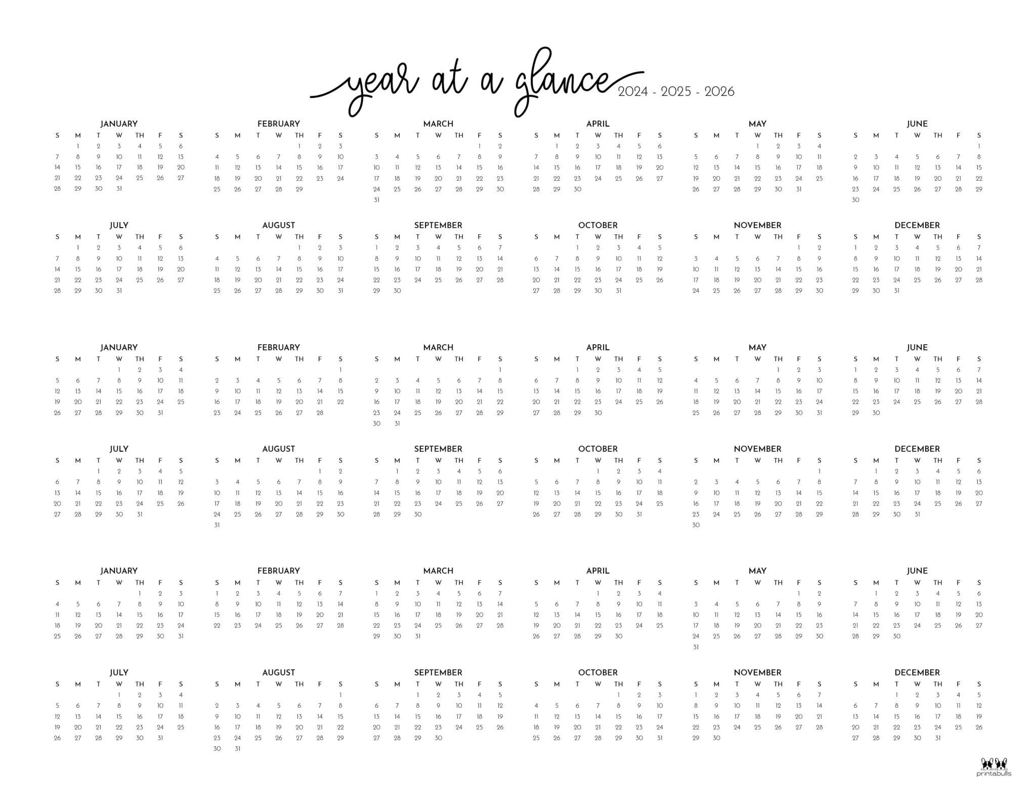 2024 2026 Three Year Calendars 10 FREE Printables Printabulls