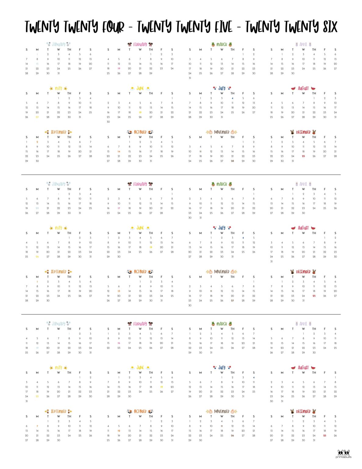 2024 2026 Three Year Calendars 10 FREE Printables PrintaBulk