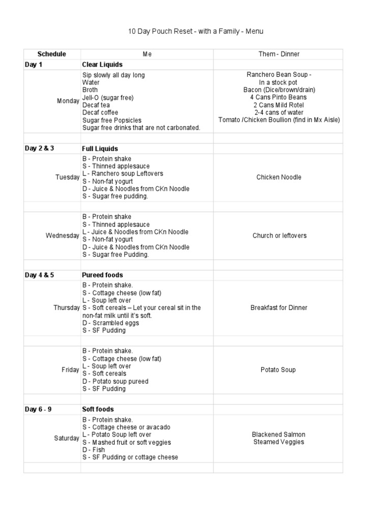 10 Day Pouch Reset with a Family Menu: Schedule Day 1 Clear Liquids