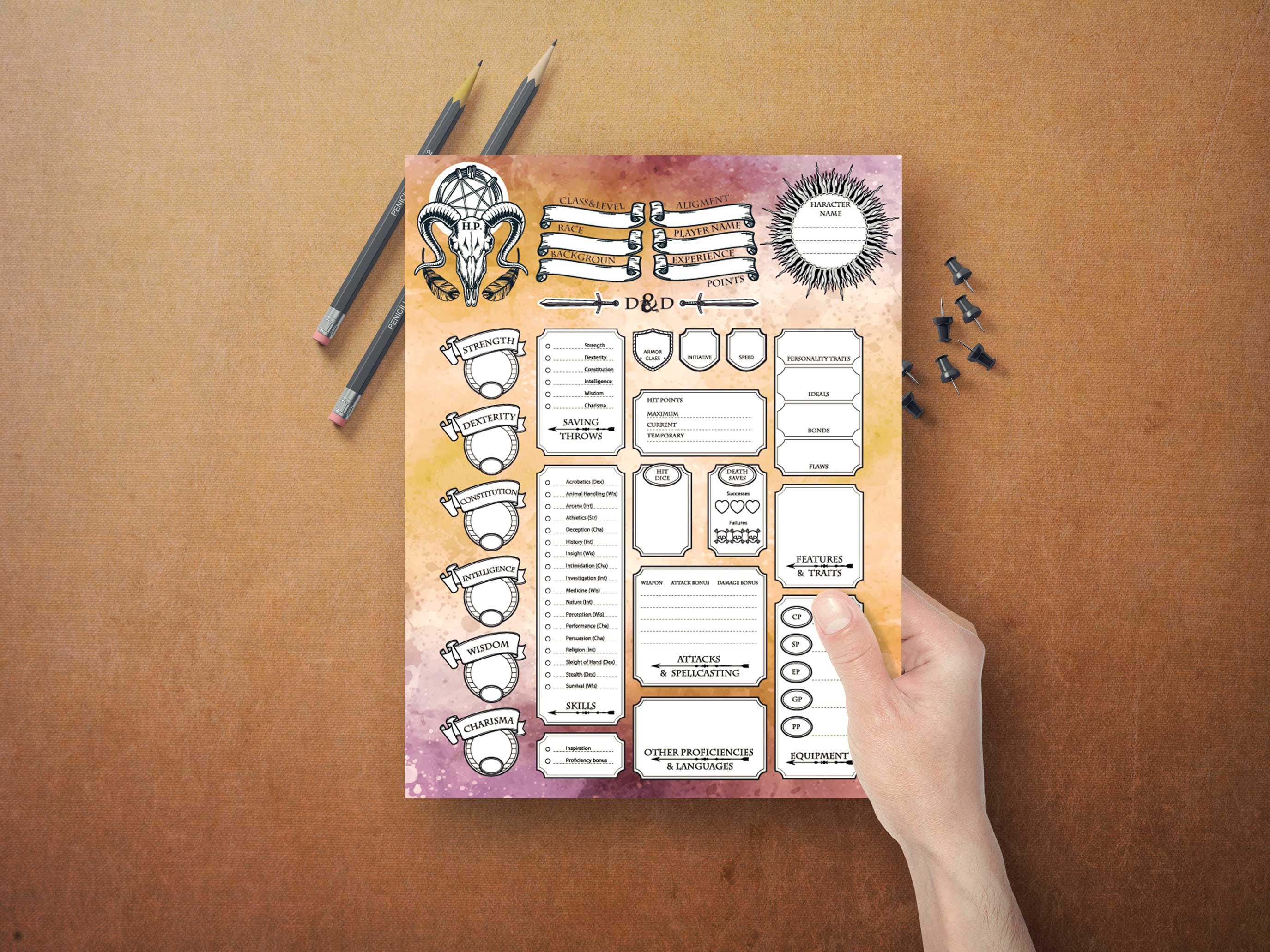 Dnd 5e Character Sheet Printable Customizable PDF Instant Download Etsy