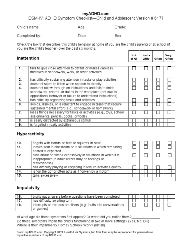 Adhd Checklist Pdf Printable