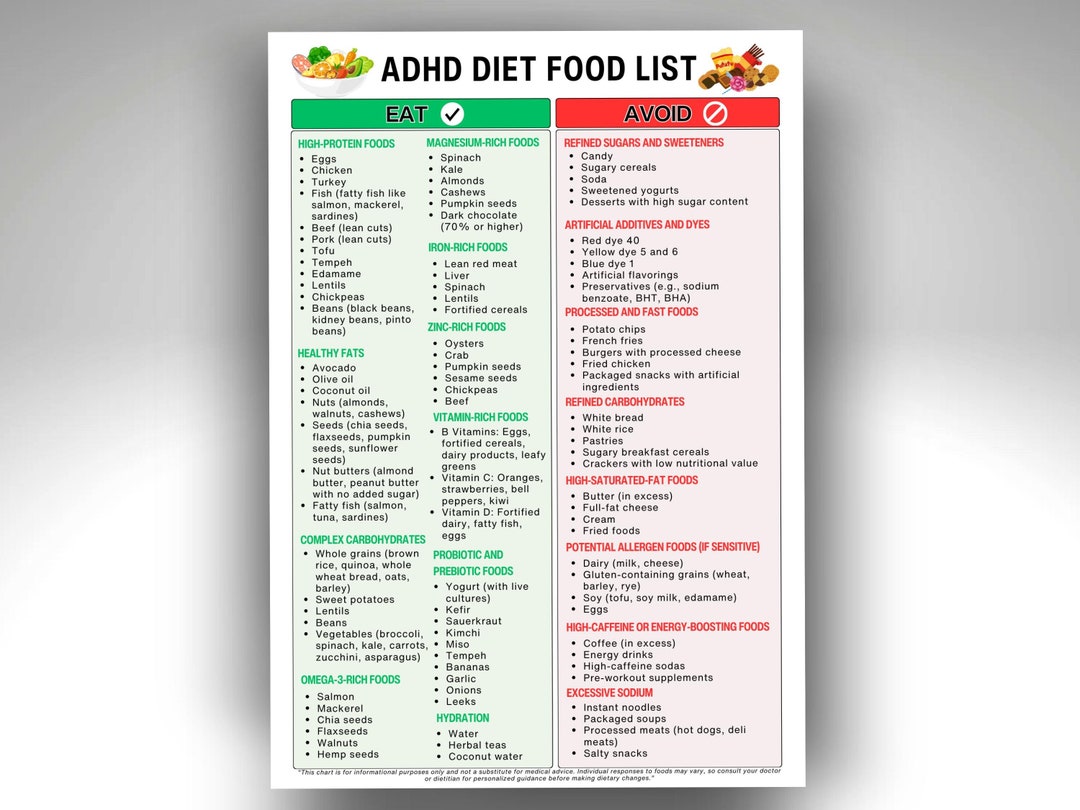 ADHD Diet Food List ADHD Diet Chart Adhd Diet for Adults Adhd Diet Plan
