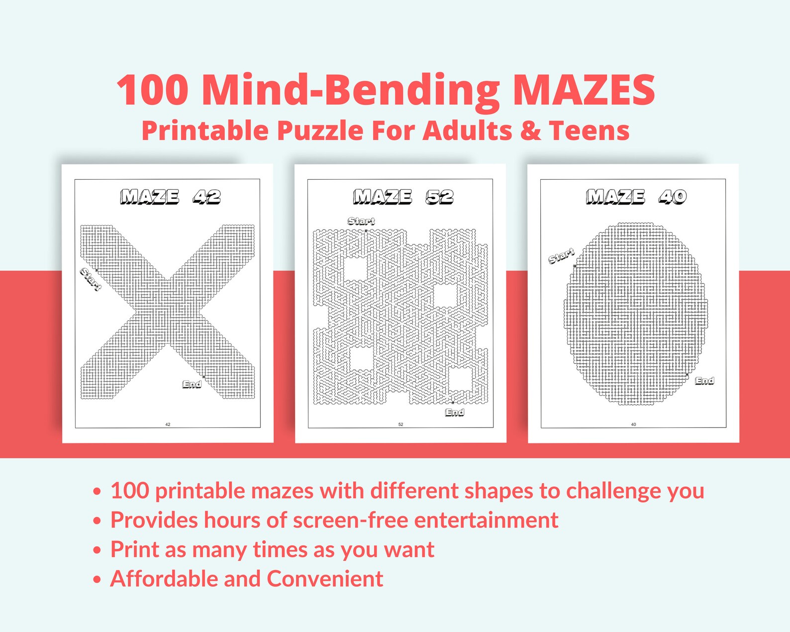 109 Printable Mazes TeenPuzzle Book Brain Teaser Activity