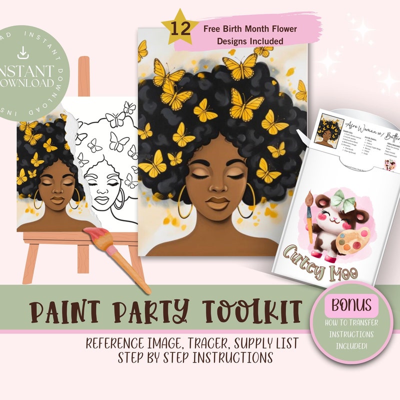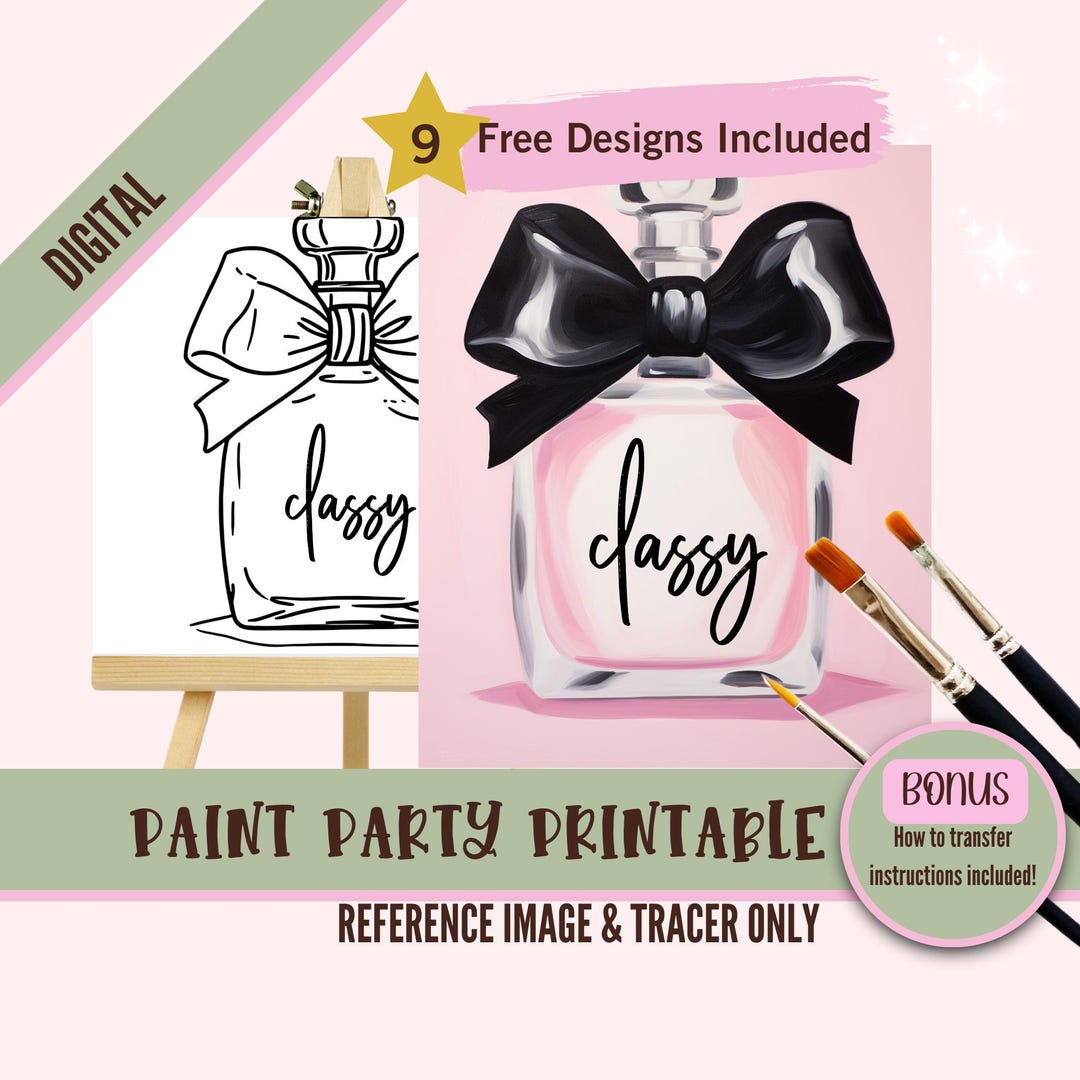Ladies Night Sip and Paint Canvas Pre Drawn Template for DIY Painting