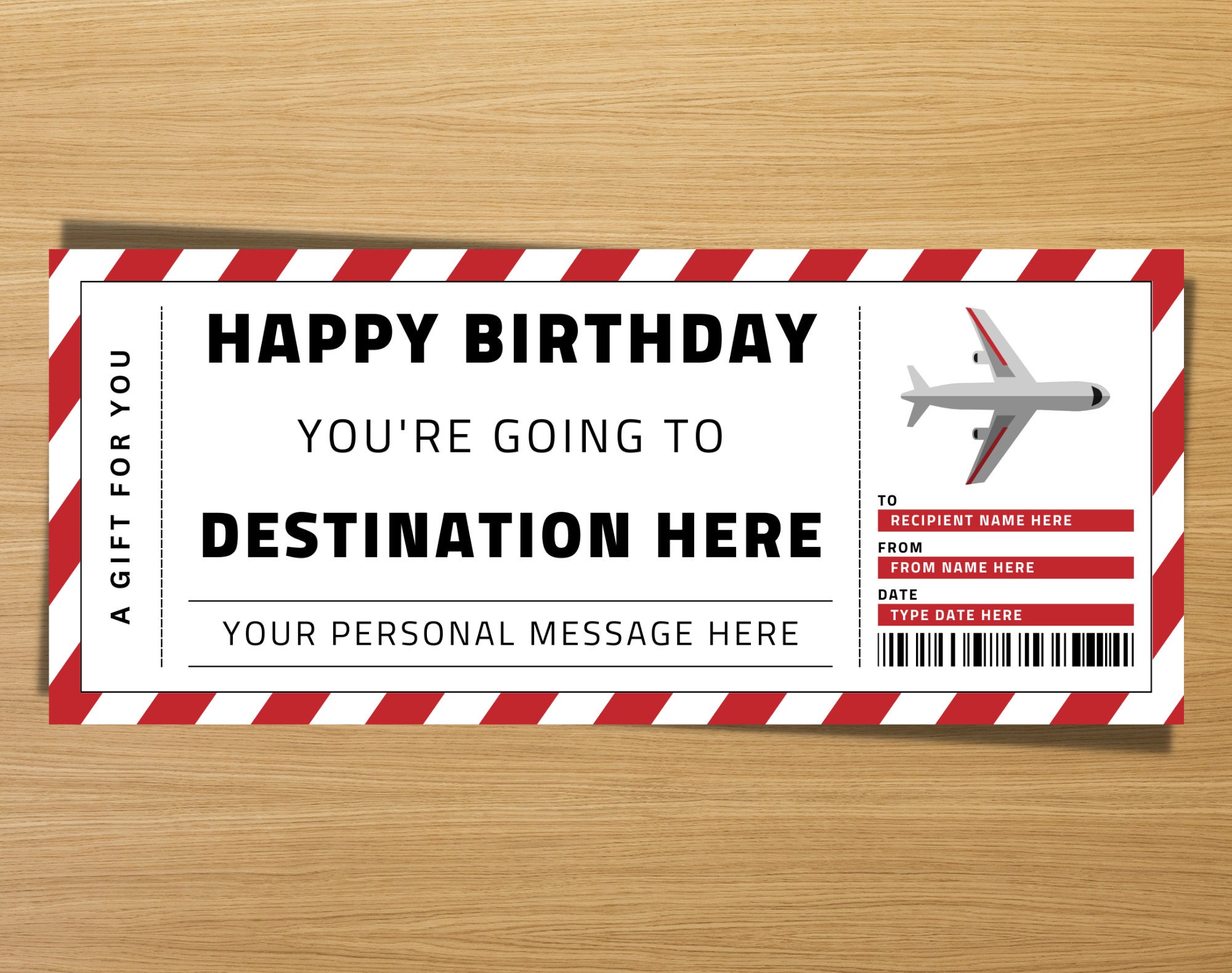 Birthday Airplane Ticket Printable Surprise Trip Ticket Etsy