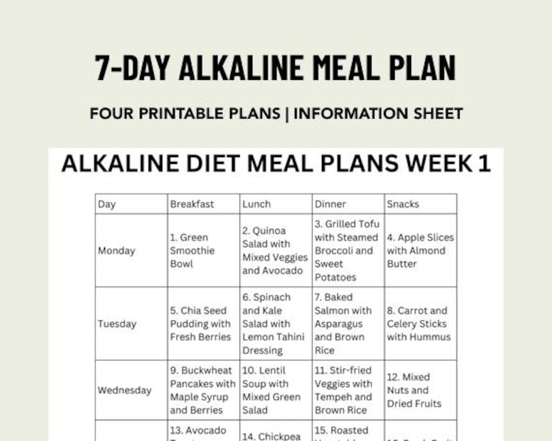 Alkaline Diet Meal Plan PDF 7 day Plans Reduced Inflammation Acid base