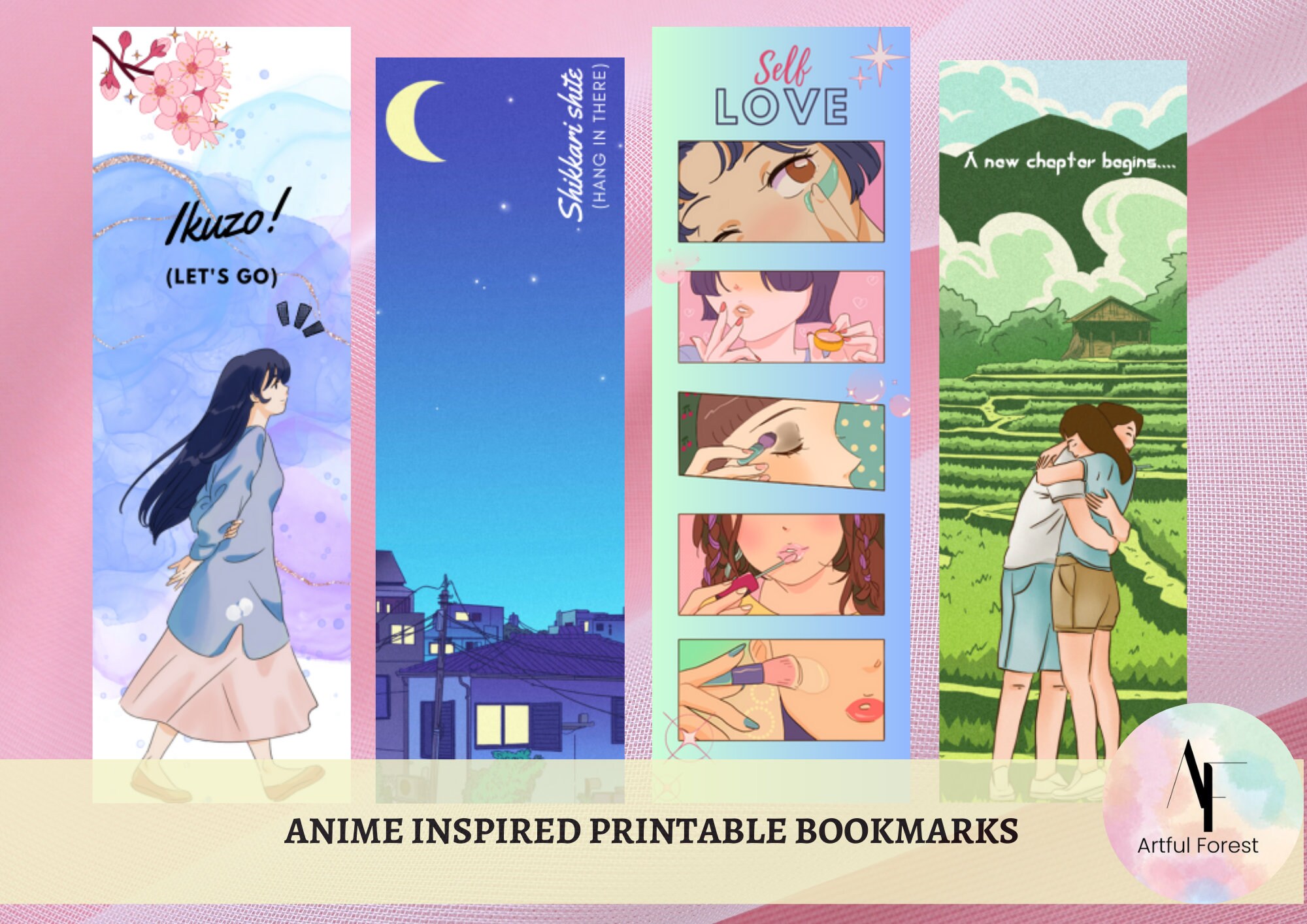 Anime Printable Bookmarks Digital Download Manga Bookmarks Etsy