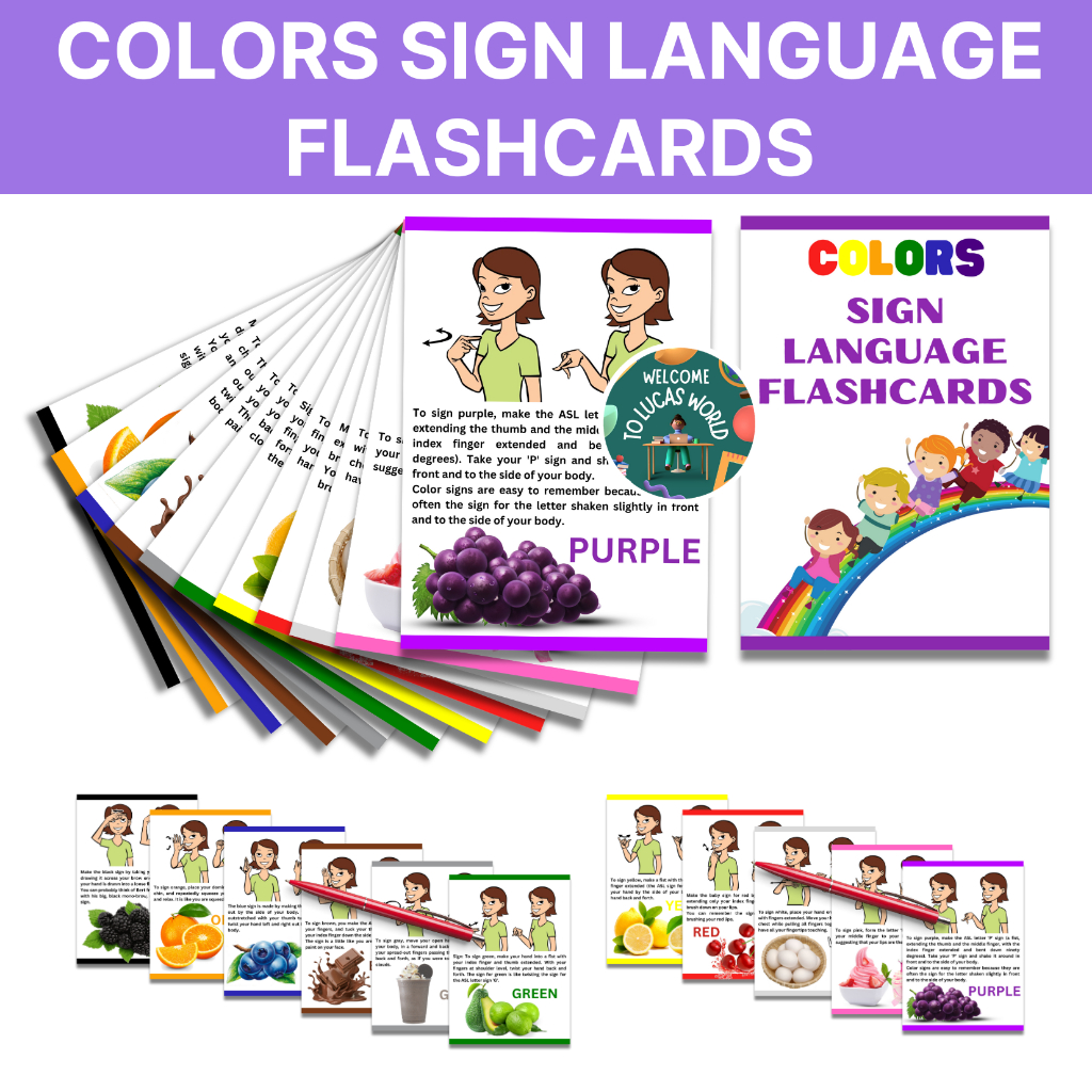 COLORS SIGN LANGUAGE FLASHCARDS ASL AMERICAN SIGN LANGUAGE FLASH