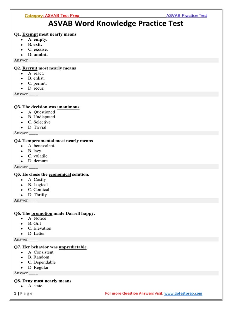 Printable Asvab Practice Test With Answers Printable Word Searches