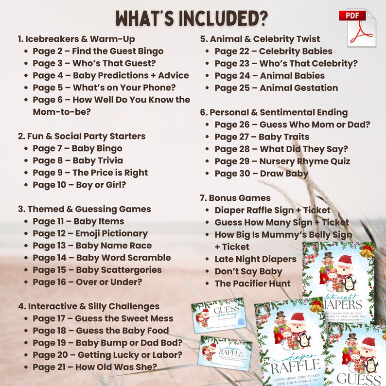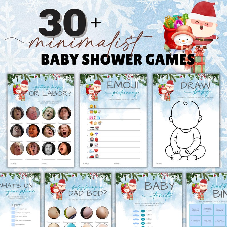 Winter Wonderland Baby Shower Games Christmas Party Printable Santa