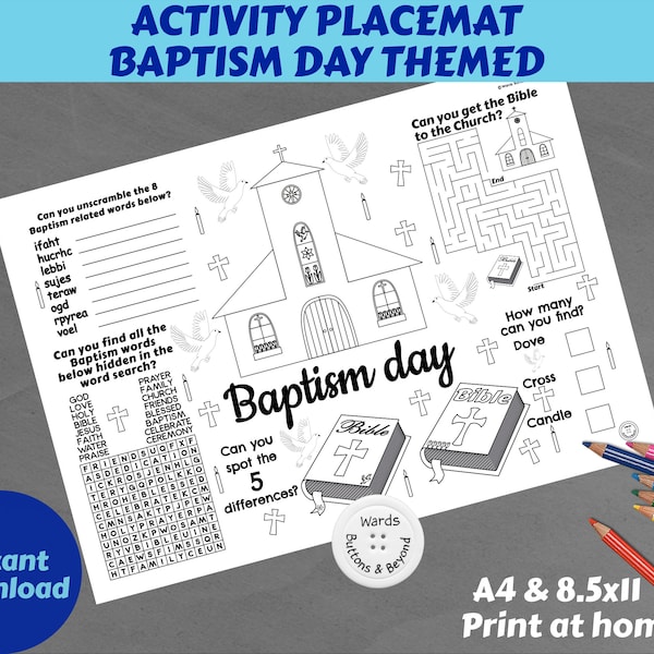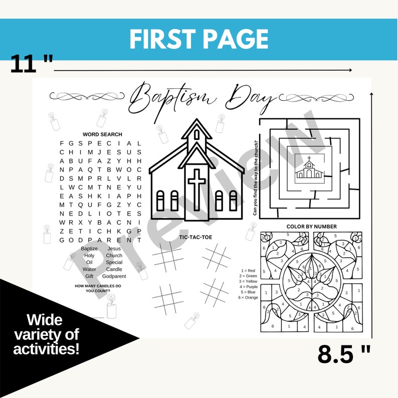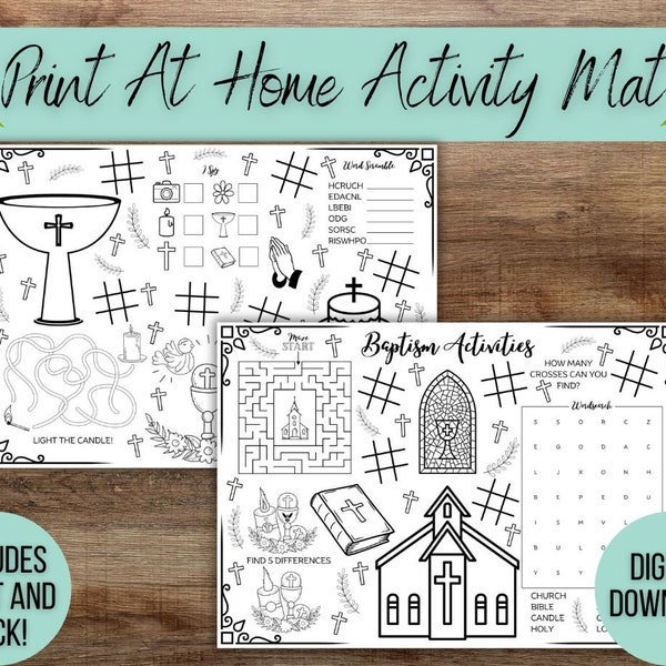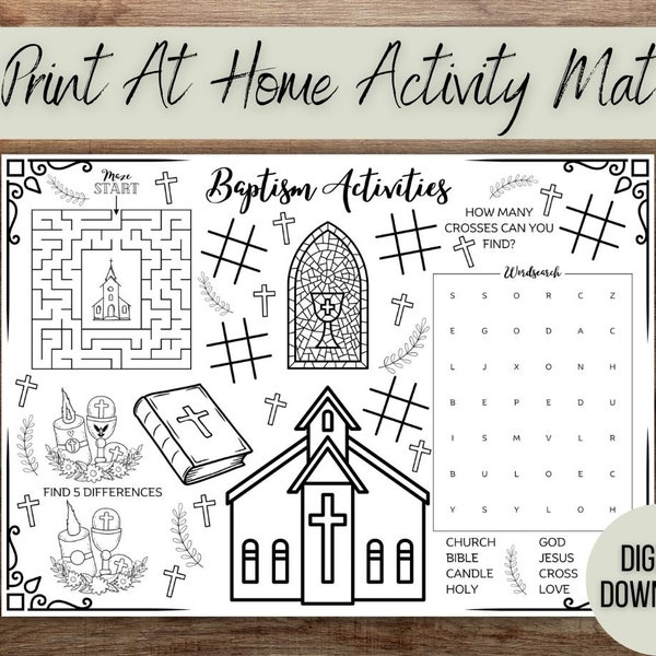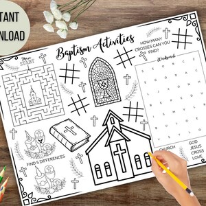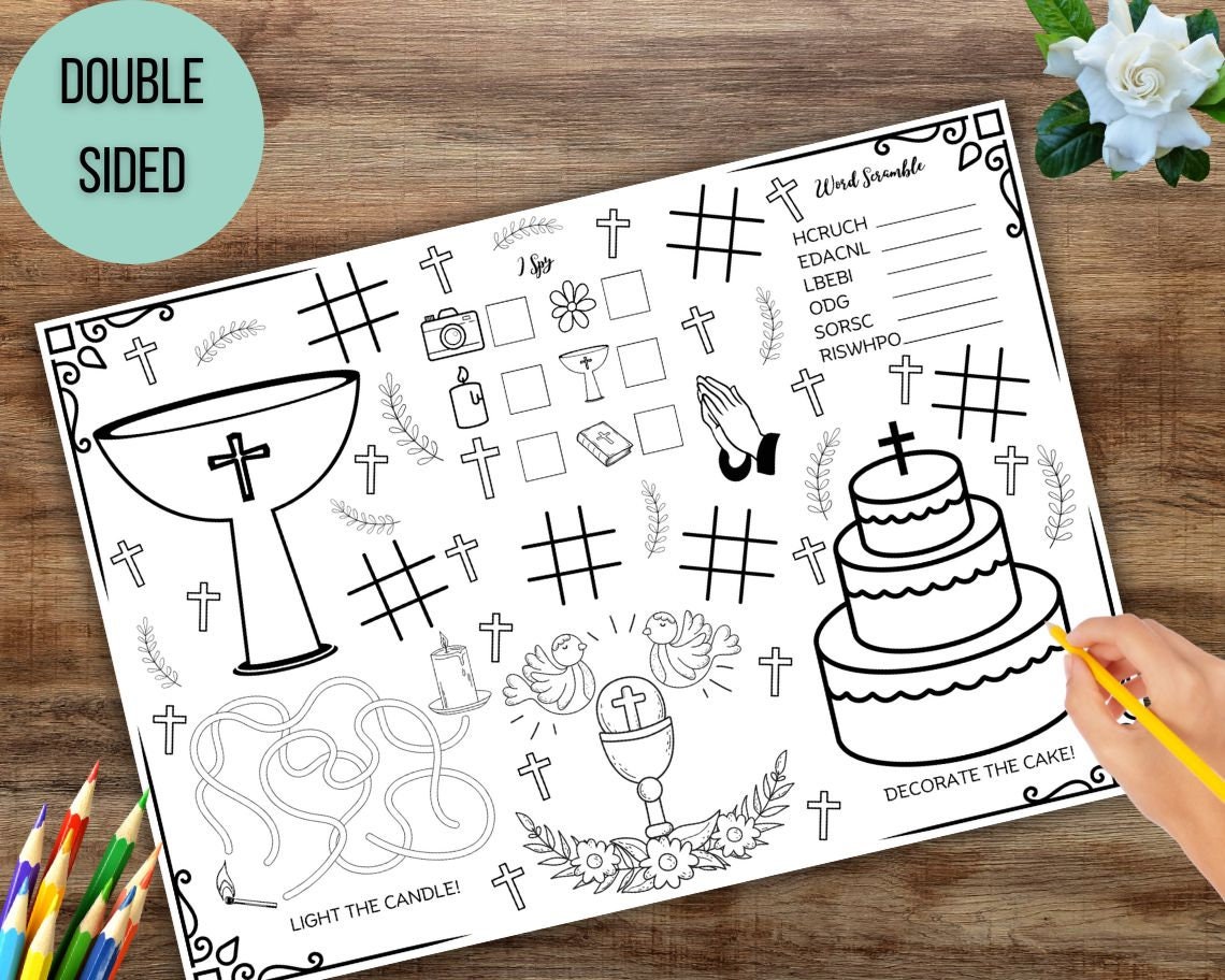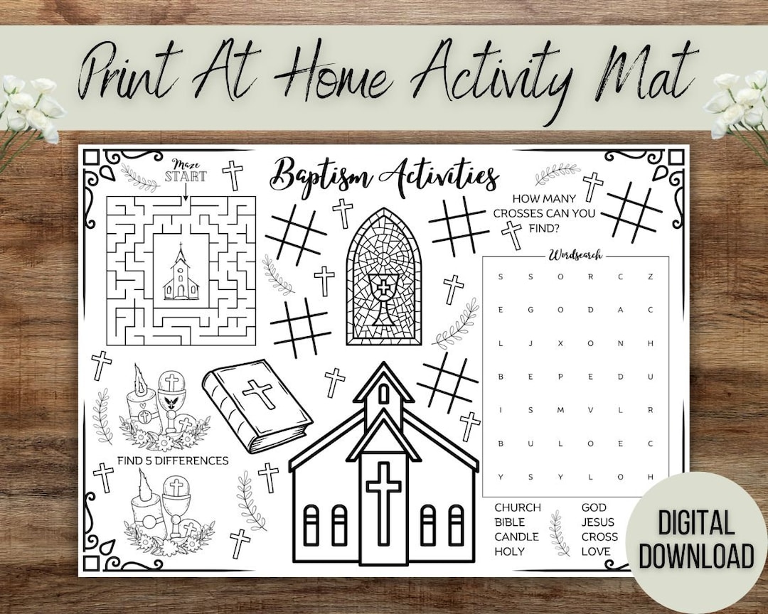 Baptism Printable Activity Sheet Placemat Fun Activities for Etsy