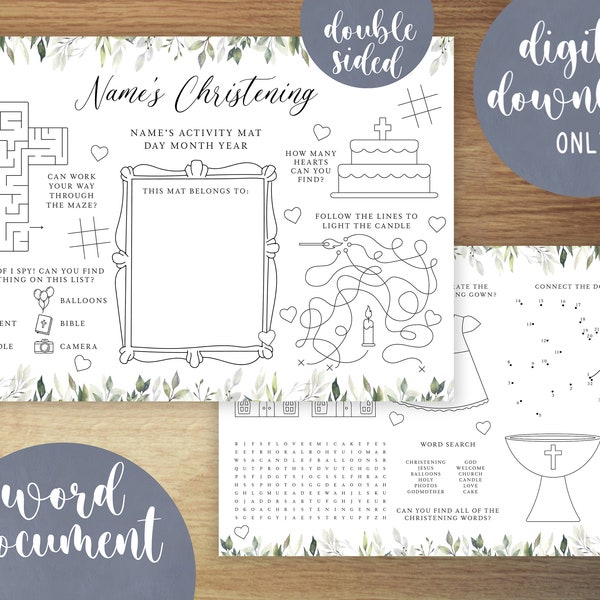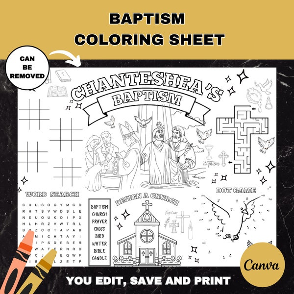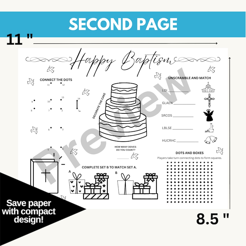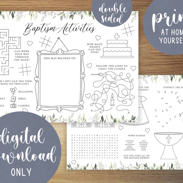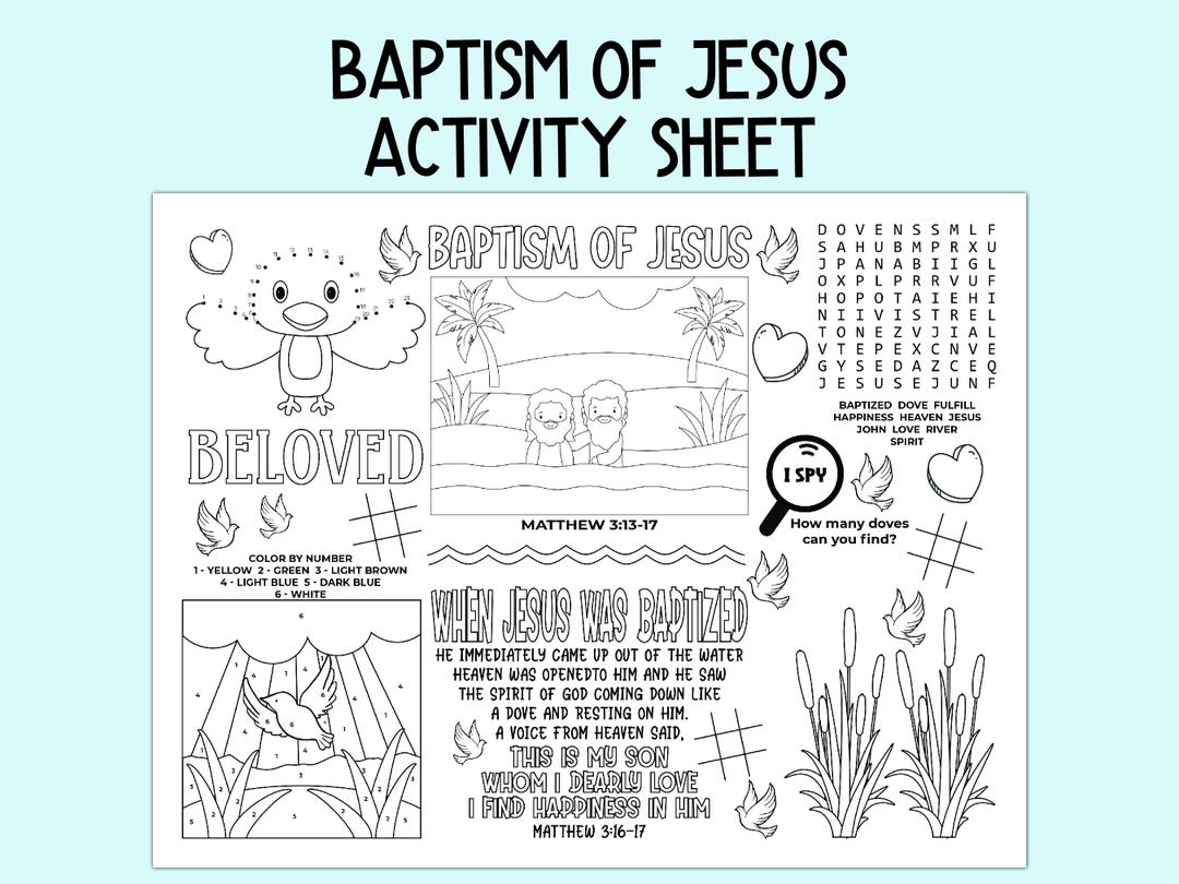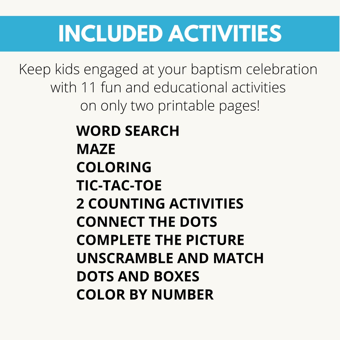 Baptism Printable Activity Sheet Placemat Fun Activities for Etsy