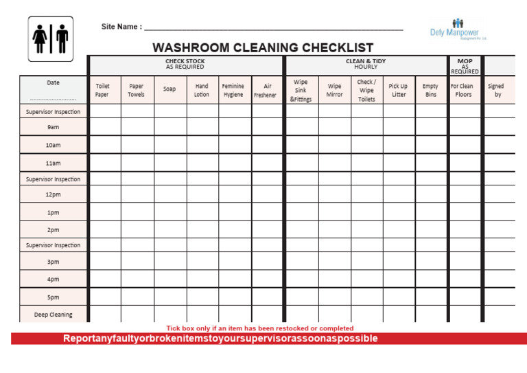 Printable Daily Toilet Cleaning Checklist Excel Sofia ward