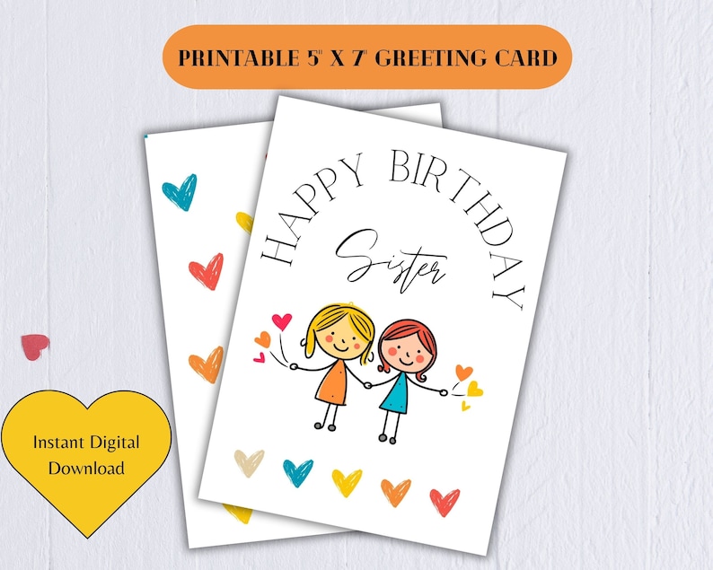 Birthday Card for Sister Happy Birthday Sis Printable Bday Card for