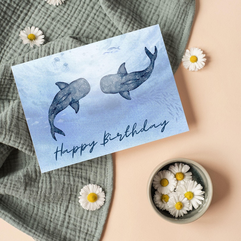 Whale Shark Birthday Card Printable Bday Card Featuring Whale Sharks