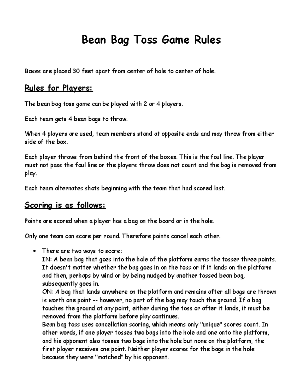 Here are some of the images for Printable Bean Bag Toss Rules that we found in our website database.