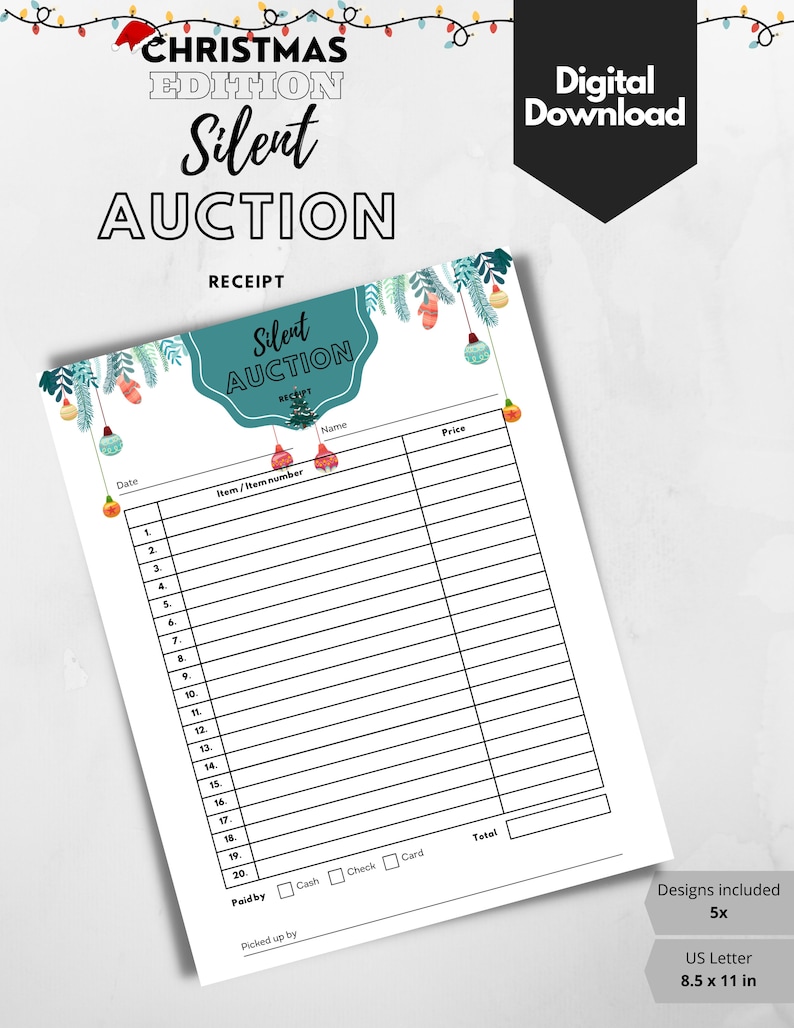 Christmas Silent Auction Bid Sheet and Receipt / Printable Bid Sheet