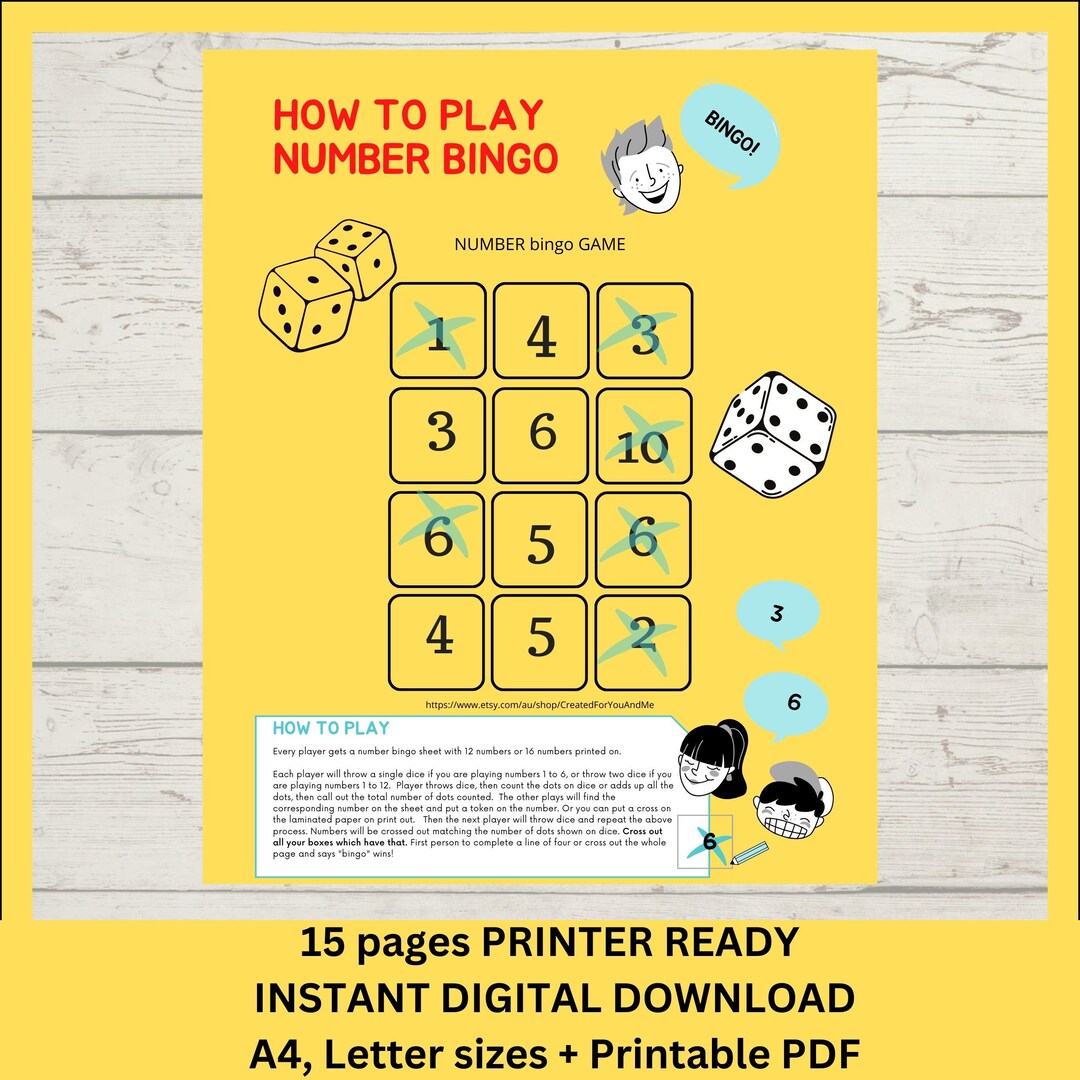 Interactive Number Bingo Counting Game for 4 6 Year Olds Instant