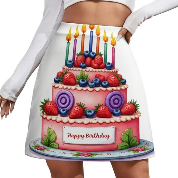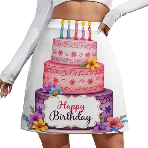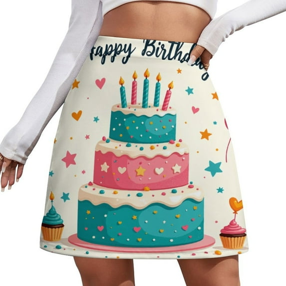 Birthday Cake with Candles Women #39 s High Waist Skirt Stretchy Casual