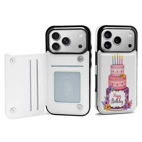 Birthday Cake with Candles Leather Wallet Case for iPhone 12 Pro Max