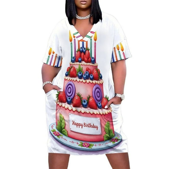 Birthday Cake with Candles Loose Pocket Dress Dresses Summer Summer