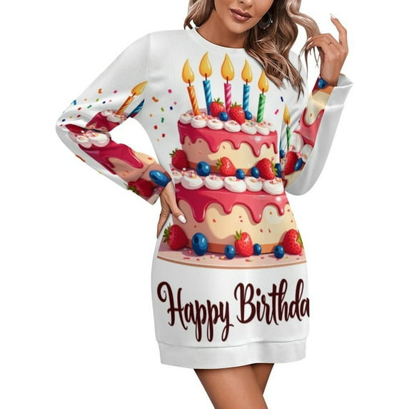 Birthday Cake with Candles on Top Women Elegant Long Sleeve Warm Dress