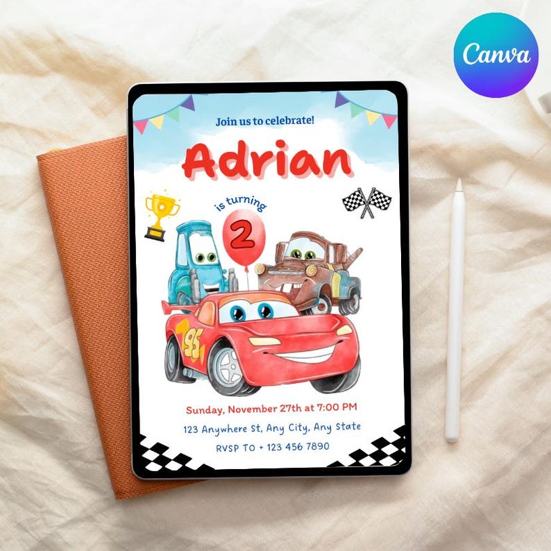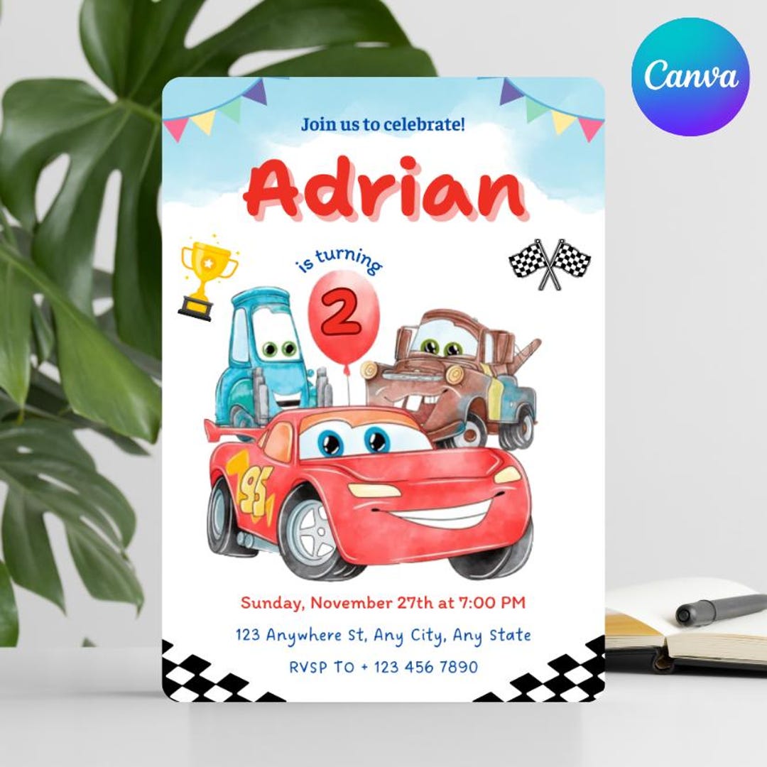 Editable Disney Cars Birthday Card Lightning Mcqueen Party Template