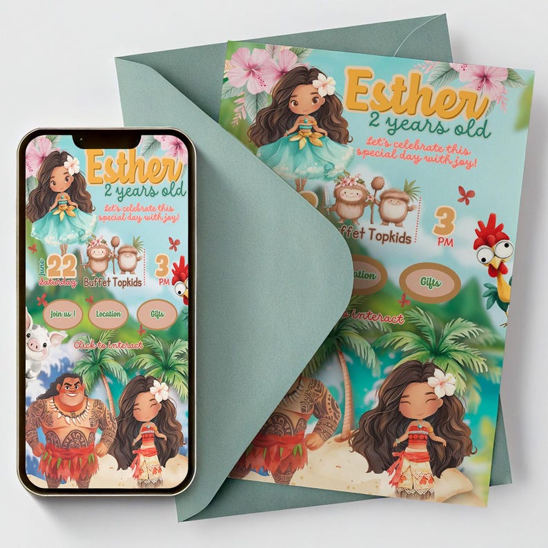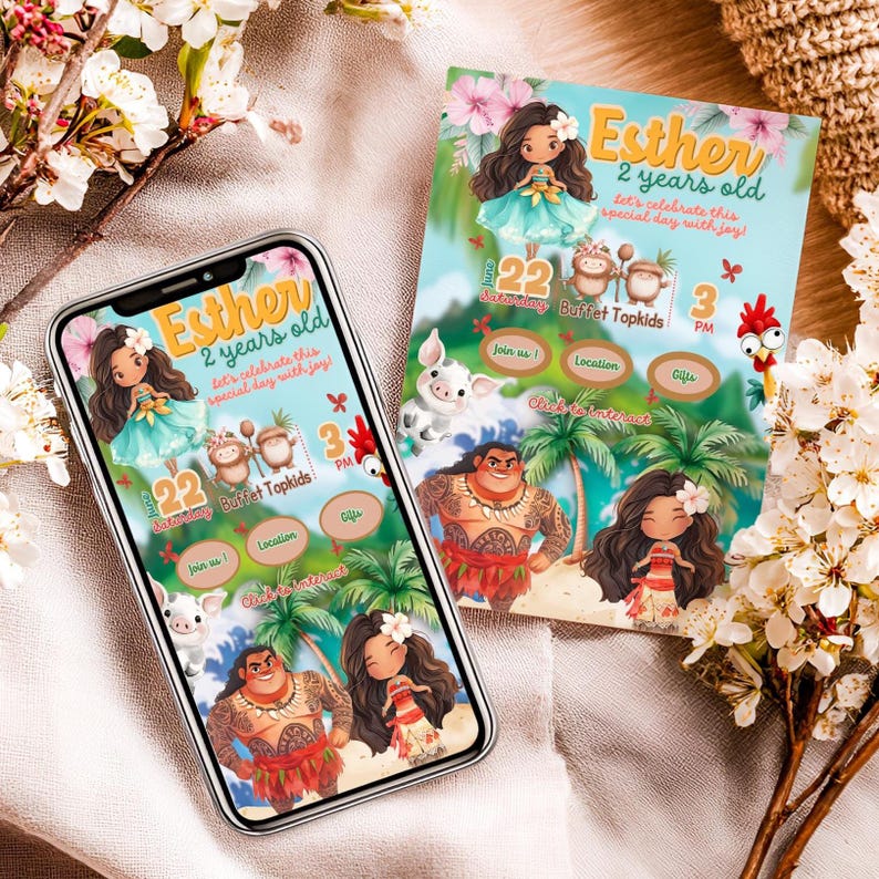 Moana Birthday Invitation Canva Template Editable Girl Tropical Disney