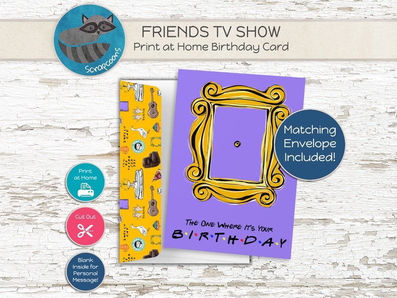 Friends TV Show Birthday Card and Envelope Print at Home Greeting Card