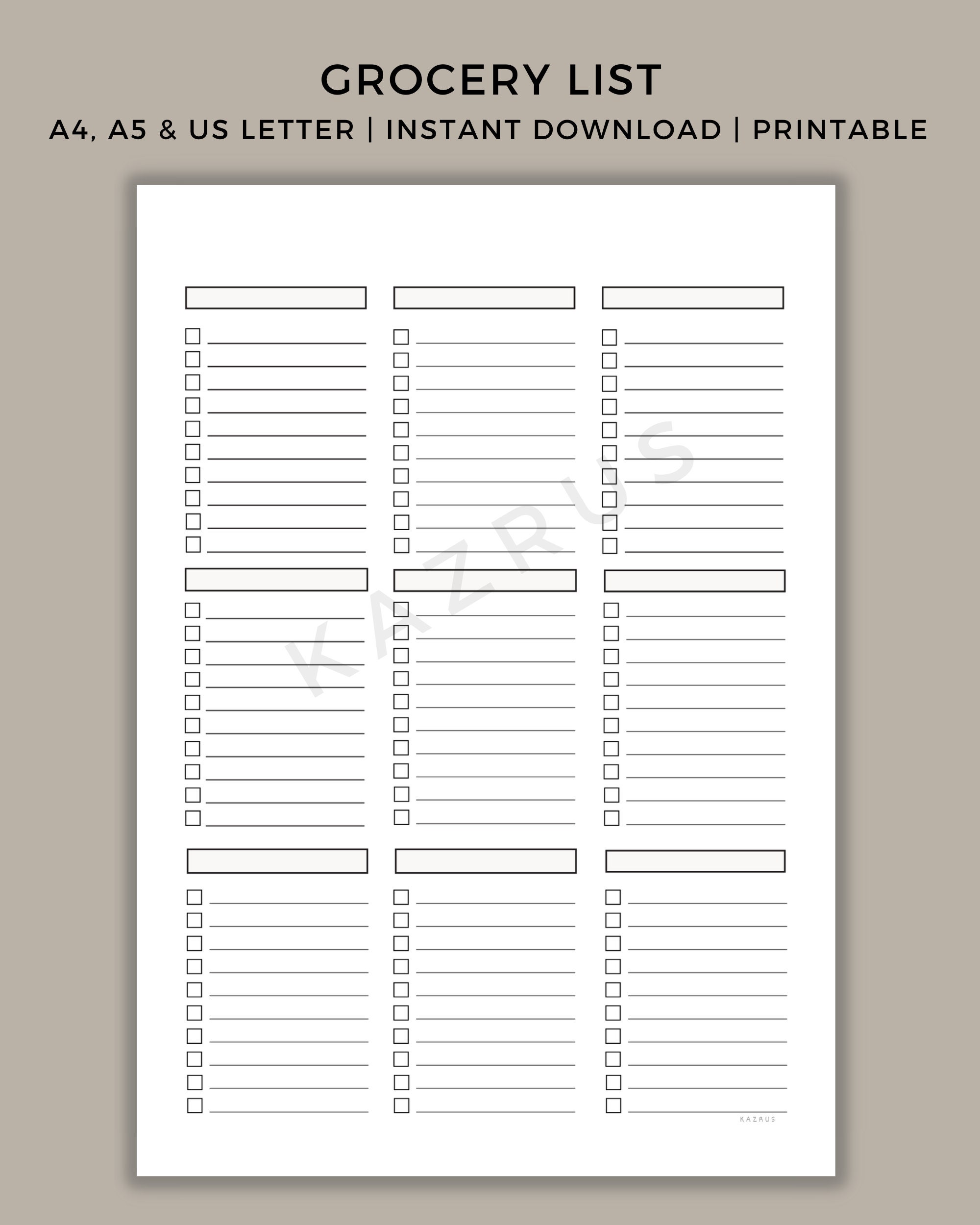 Printable Shopping List Grocery Market List Supermarket List Meal